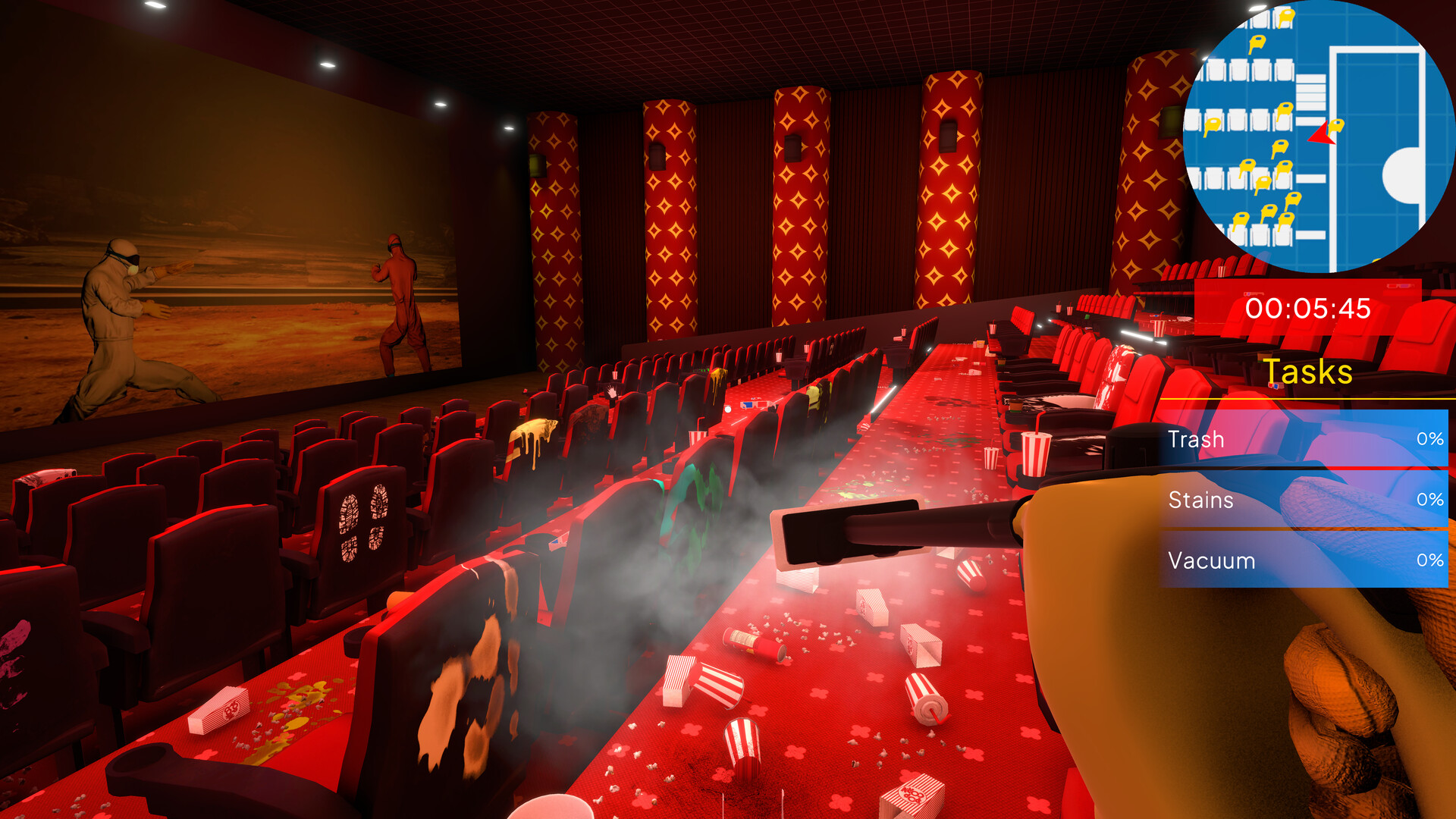 一款模拟游戏,你在清洁公司工作,处理各种地图,包括办公室、电影院、家庭和摔跤馆。在不同地点的单人模式中展示你的清洁技能。
